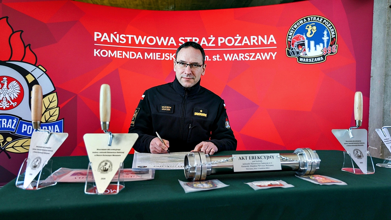 13 kwietnia 2026 r. na terenie budowy przy ul. Wólczyńskiej w Warszawie Mazowiecki Komendant Wojewódzki PSP nadbryg. Artur Gonera wziął udział w uroczystej zbiórce z okazji podpisania i wmurowania aktu erekcyjnego pod budowę Jednostki Ratowniczo-Gaśniczej nr 6 Komendy Miejskiej PSP m.st. Warszawy.