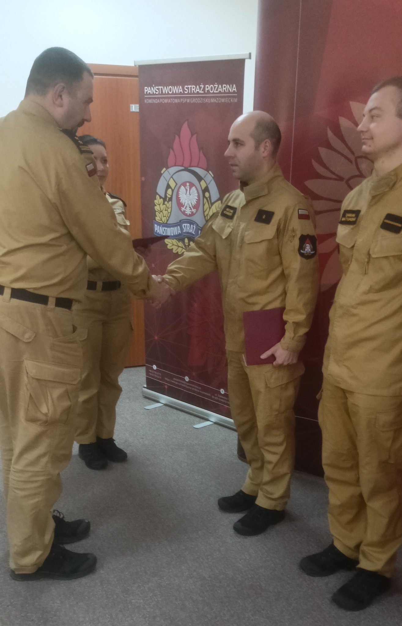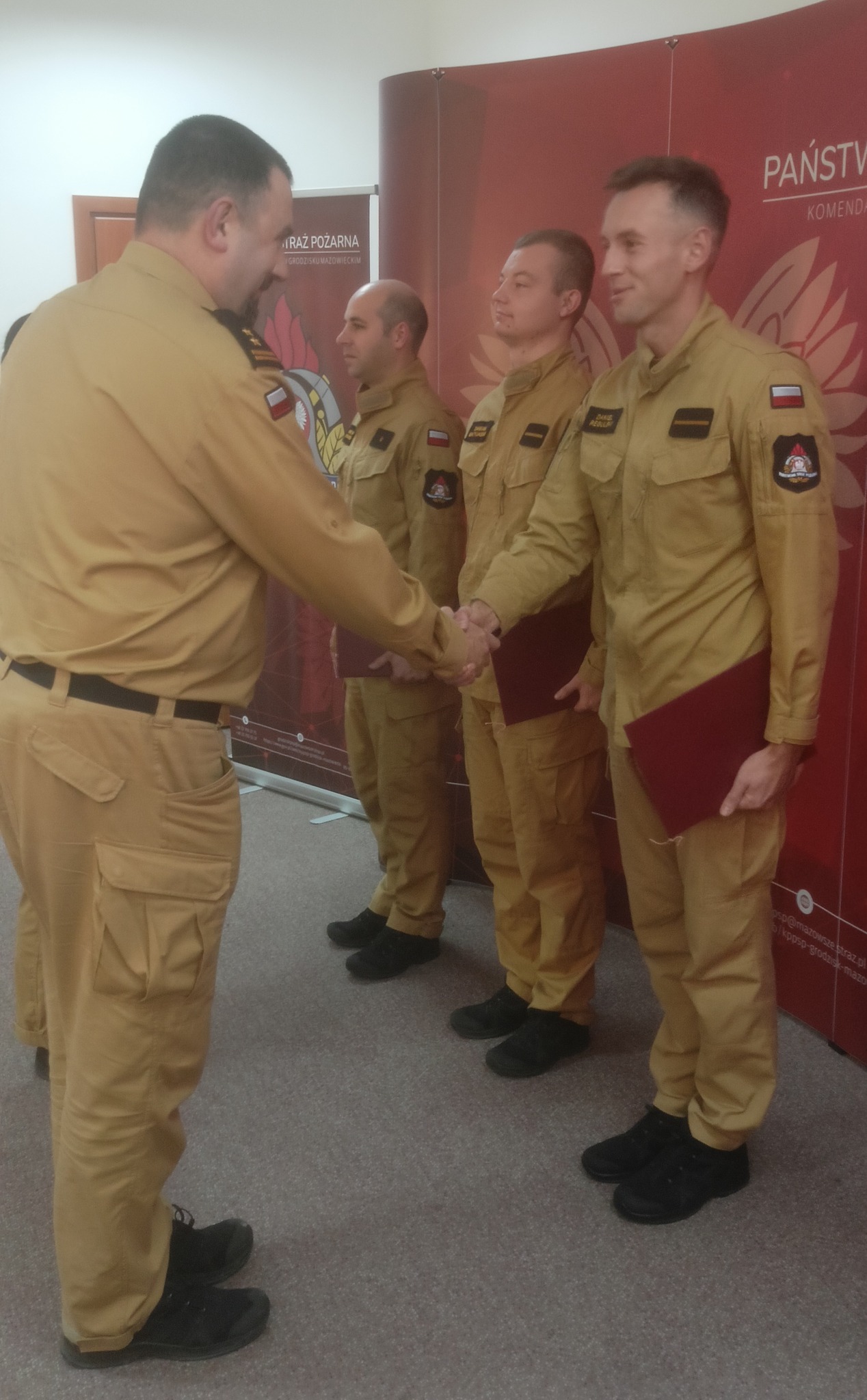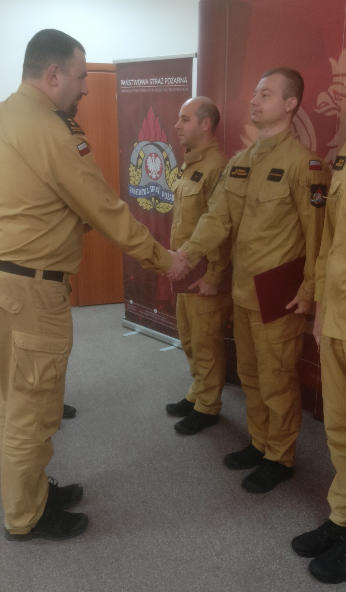 Wręczenia awansów dokonali Komendant Powiatowy bryg. Marcin Strzyżowski oraz zastępca bryg. Marek Szymanek. Na stopień aapiranta awansowany został Michał Konecki. Dwóch strażaków Damian Matyjasiak i Daniel Regulski awansowani zostali na stopień starszego strażaka.