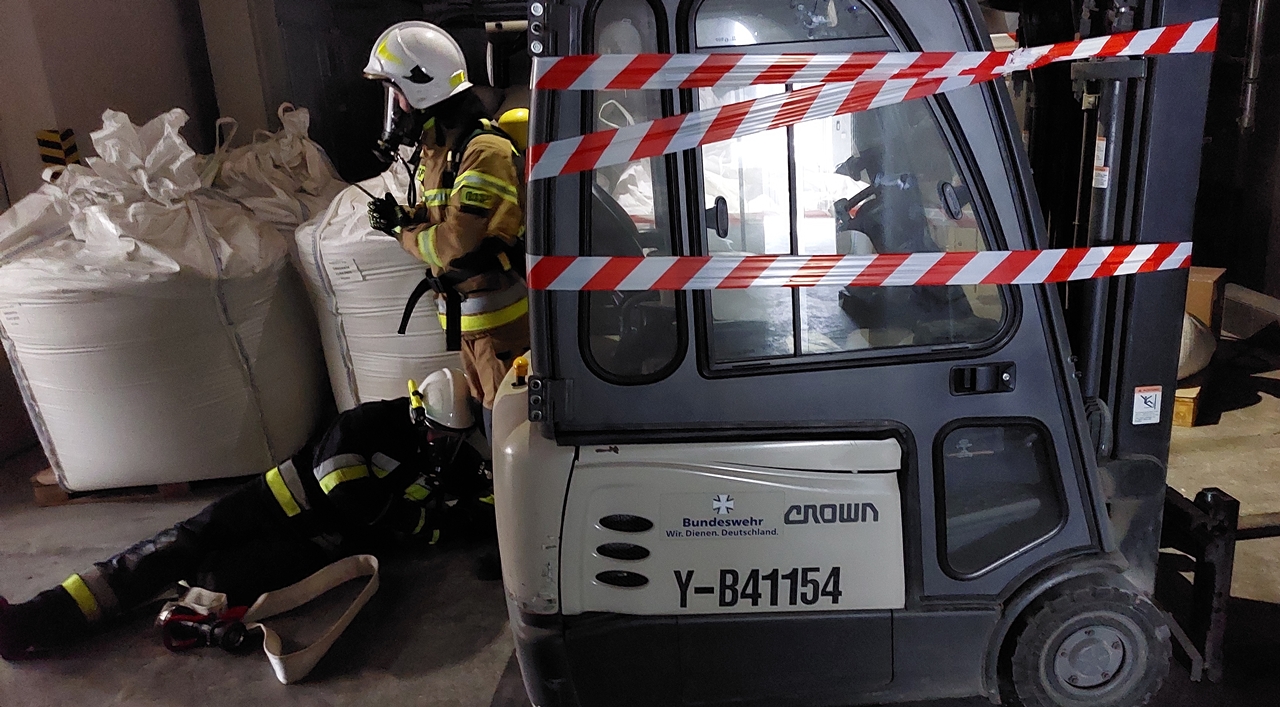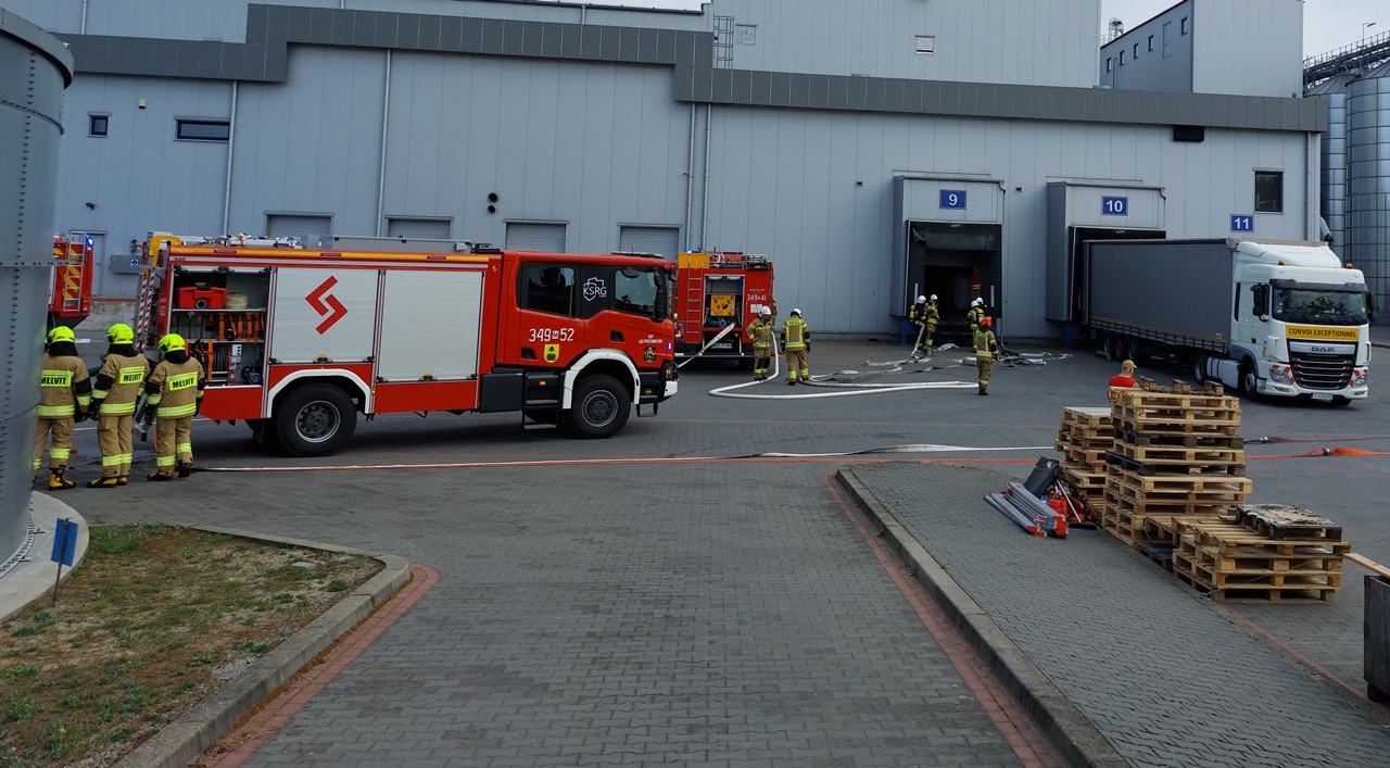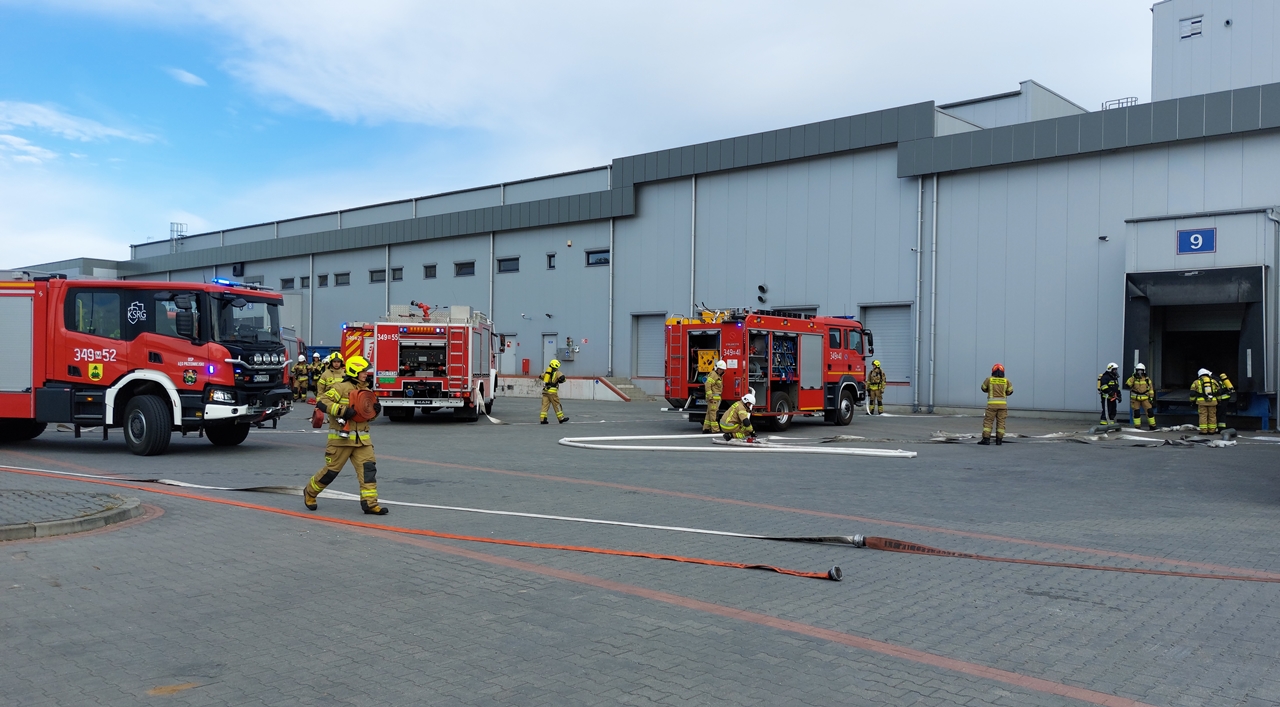 Ćwiczenia zakładały wystąpienie awarii wózka widłowego (zwarcie instalacji elektrycznej), w wyniku której powstał pożar w punkcie przyjęć budynku produkcyjnego. Dym i gazy pożarowe przedostały się na magazyn oraz całą kondygnację przez niezamknięte drzwi w korytarzu. W wyniku podjętych działań gaśniczych wewnątrz hali magazynowej, ranny został jeden ratownik, który został niezwłocznie ewakuowany w bezpieczne miejsce i zaopatrzony medycznie.