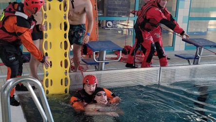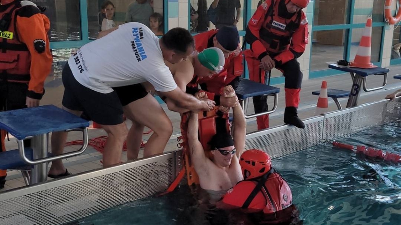 W ramach stałego podnoszenia kwalifikacji zawodowych strażacy z Komendy Powiatowej Państwowej Straży Pożarnej w Pułtusku uczestniczyli w kilku ćwiczeniach doskonalących na basenie miejskim.