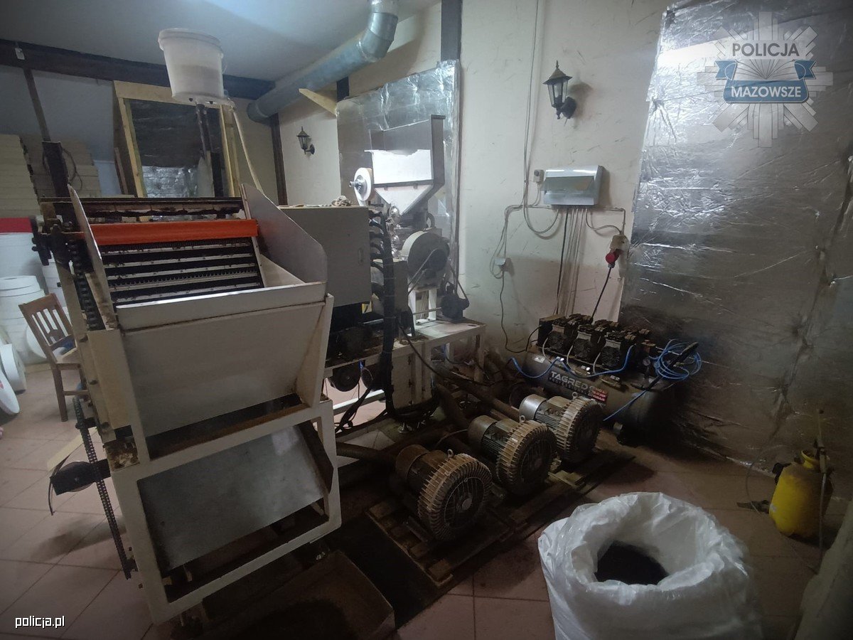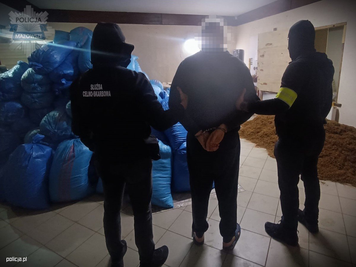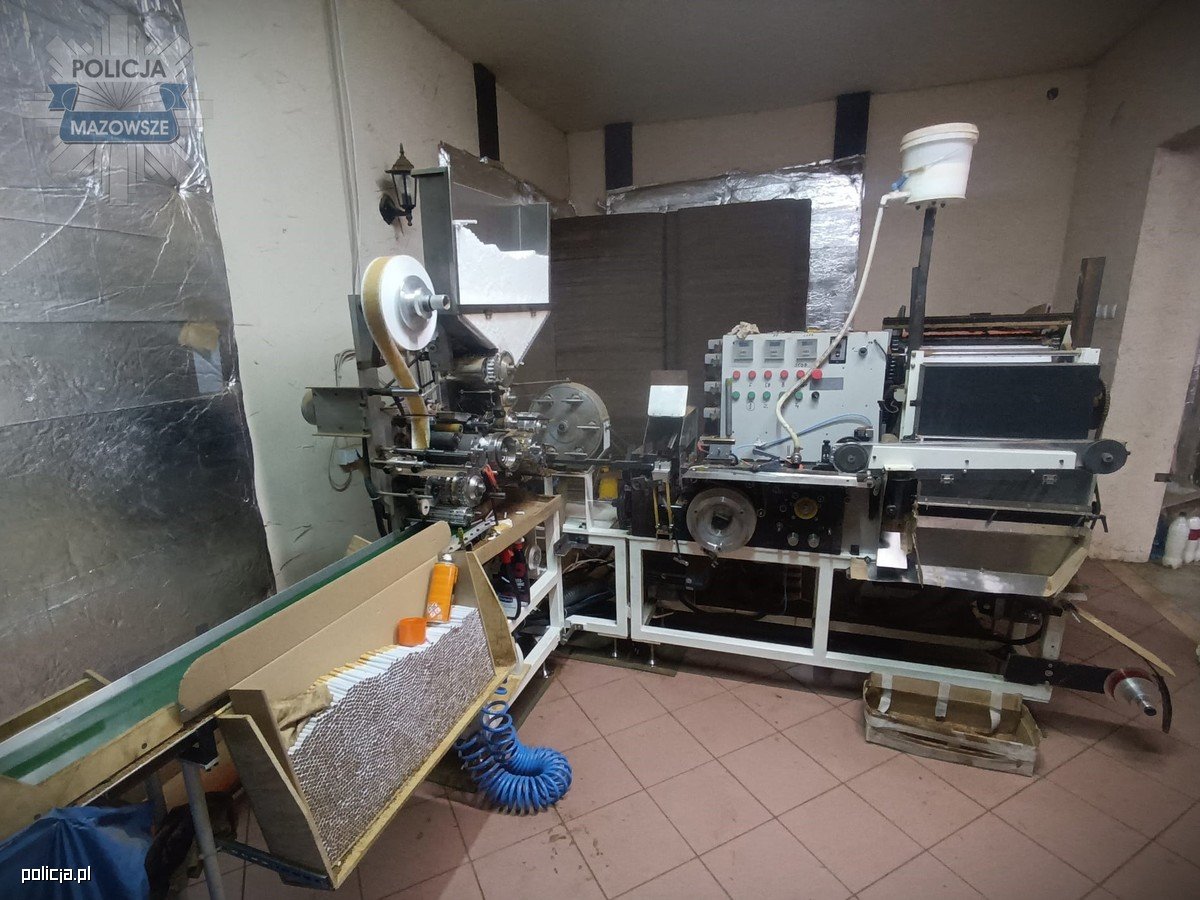 Od kilku miesięcy funkcjonariusze Sekcji w Ciechanowie Wydziału Kryminalnego Komendy Wojewódzkiej Policji zs. w Radomiu wspólnie z funkcjonariuszami Mazowieckiego Urzędu Celno Skarbowego w Warszawie pracowali nad sprawą nielegalnego wytwarzania tytoniu w powiecie makowskim. 9 lipca funkcjonariusze obu służb weszli na teren posesji w miejscowości Łaś (powiat makowski). Podczas kontroli w pomieszczeniach mieszkalno-gospodarczych zabezpieczyli linię produkcyjną do wytwarzania papierosów bez polskich znaków akcyzy, komponenty do ich produkcji w postaci: filtrów, bibuły, kleju oraz owijek, jak również ponad 3,8 tony tytoniu. Na miejscu znaleźli również 284 tys. szt. gotowych papierosów bez polskich znaków akcyzy.