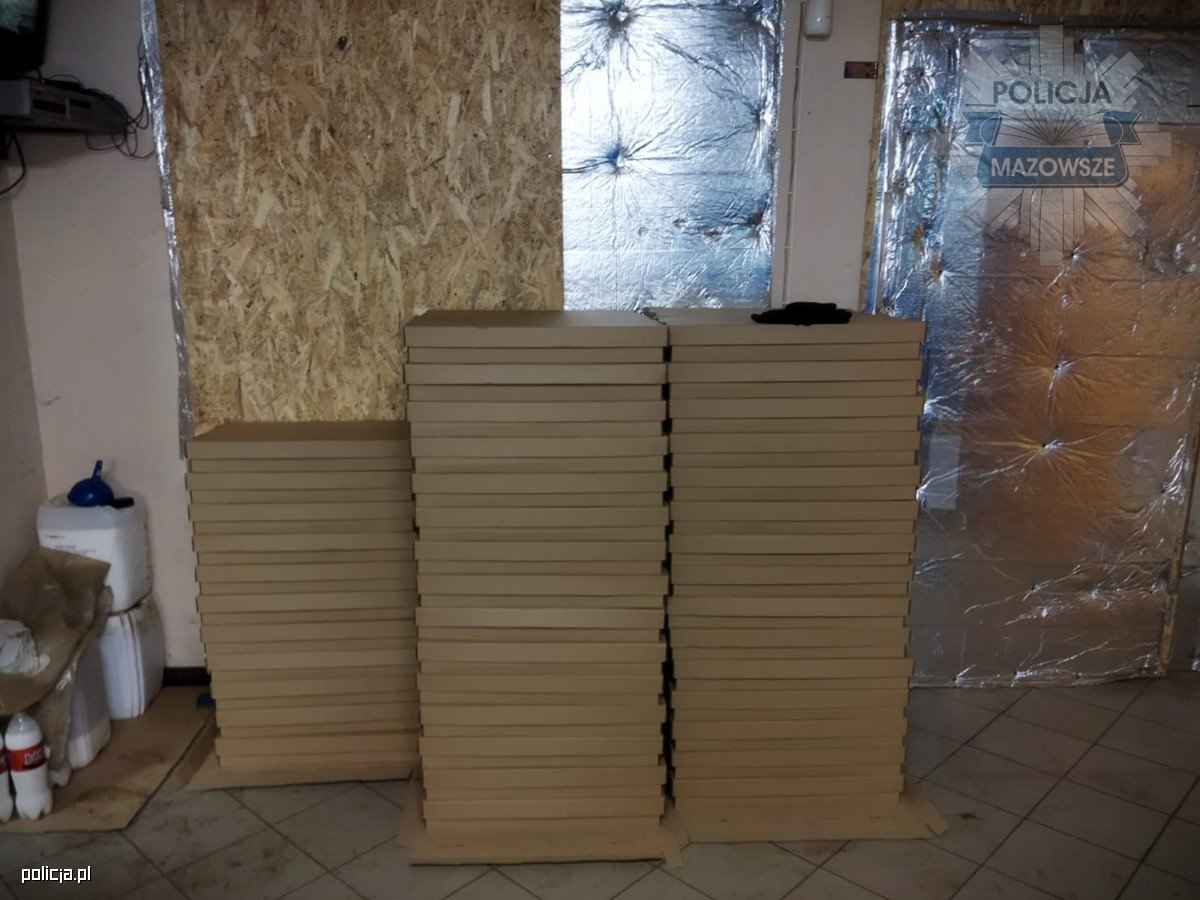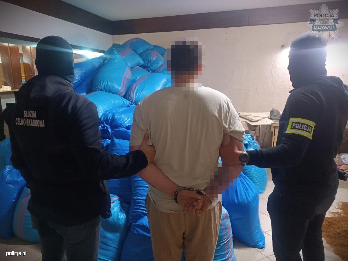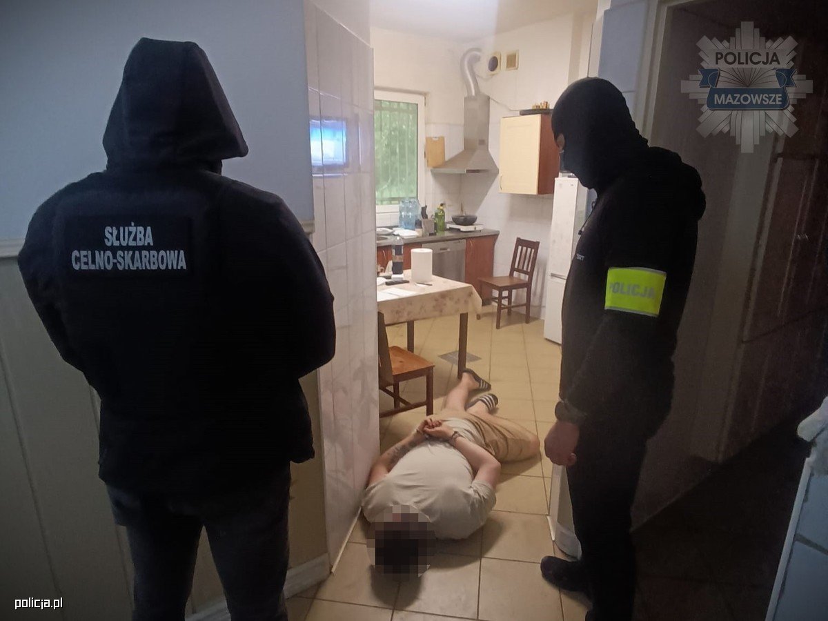 Od kilku miesięcy funkcjonariusze Sekcji w Ciechanowie Wydziału Kryminalnego Komendy Wojewódzkiej Policji zs. w Radomiu wspólnie z funkcjonariuszami Mazowieckiego Urzędu Celno Skarbowego w Warszawie pracowali nad sprawą nielegalnego wytwarzania tytoniu w powiecie makowskim. 9 lipca funkcjonariusze obu służb weszli na teren posesji w miejscowości Łaś (powiat makowski). Podczas kontroli w pomieszczeniach mieszkalno-gospodarczych zabezpieczyli linię produkcyjną do wytwarzania papierosów bez polskich znaków akcyzy, komponenty do ich produkcji w postaci: filtrów, bibuły, kleju oraz owijek, jak również ponad 3,8 tony tytoniu. Na miejscu znaleźli również 284 tys. szt. gotowych papierosów bez polskich znaków akcyzy.