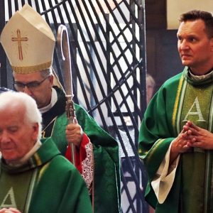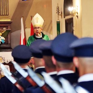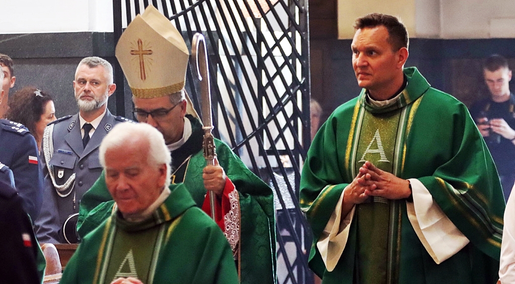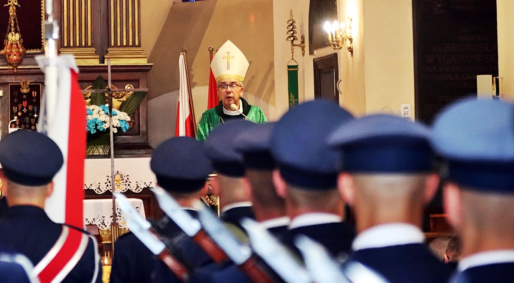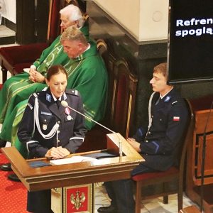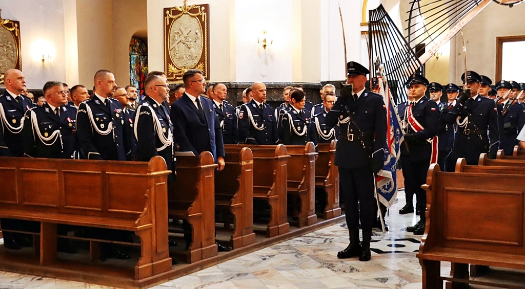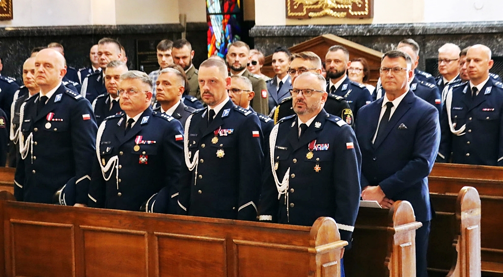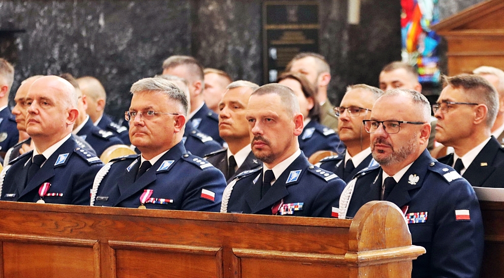 Obchody rozpoczęła msza święta w intencji wszystkich policjantów i pracowników Policji celebrowana pod przewodnictwem Biskupa Diecezji Łowickiej – dra hab. Wojciecha Osiala. O oprawę muzyczną uroczystego nabożeństwa zadbała sopranistka Katarzyna Bochyńska-Wojdył i Orkiestra Komendy Wojewódzkiej Policji w Katowicach.