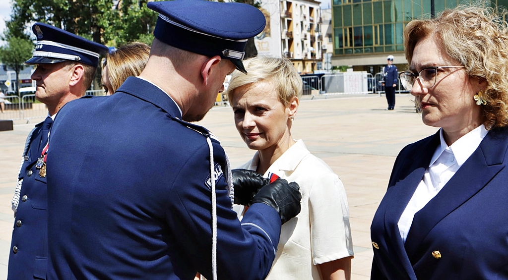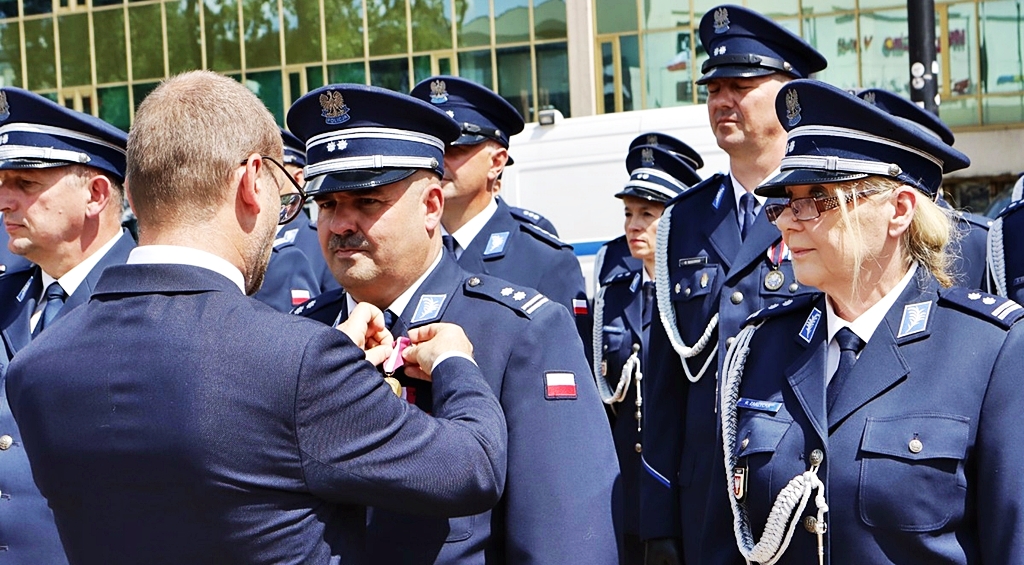 Zgromadzonym na placu policjantom i pracownikom Policji medale i odznaczenia wręczali insp. Marek Boroń, Wicewojewoda Robert Sitnik oraz nadinsp. Waldemar Wołowiec.