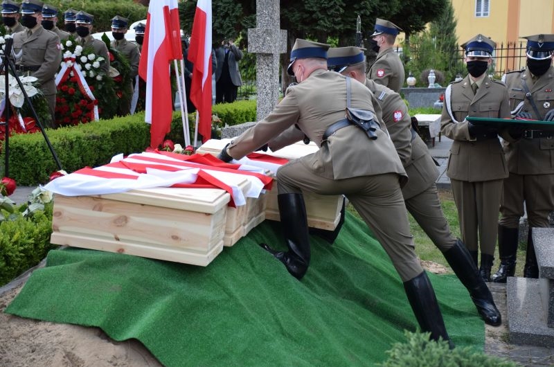 Księża odprawili egzekwie pogrzebowe nad trumnami żołnierzy. W dalszym ciągu uroczystości żołnierze złożyli Flagi Państwowe umieszczone na trumnach i przekazali je Panu Piotrowi Jeżółkowskiemu – Prezesowi Zarządu Fundacji Fort III Pomiechówek. Następnie trumny zostały złożone do grobu, żołnierze zostali pochowani obok swoich kolegów w kwaterze wojennej na cmentarzu w Pomiechowie. Ostatnie dwie części ceremonii pogrzebowej to salwa honorowa oraz złożenie wieńców i wiązanek przez obecnych na uroczystości.