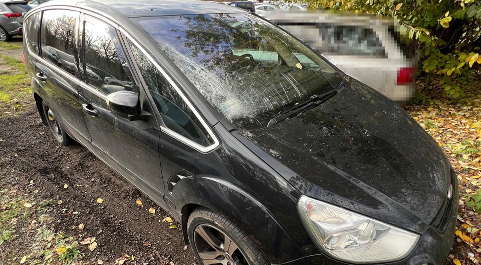 Samochód, którym spowodował kolizję, trafił na policyjny parking, gdzie został poddany oględzinom. Miał widoczne uszkodzenia, które jednoznacznie wskazywały, że brał udział w zdarzeniu drogowym: rozbitą szybę czołową oraz zarysowania na zderzaku i masce.