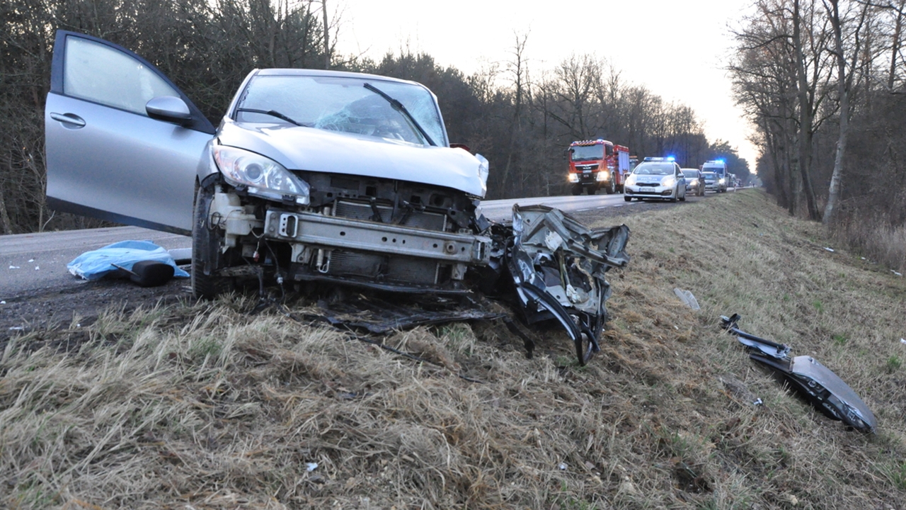 Z wstępnych ustaleń policjantów pracujących na miejscu zdarzenia wynika, że kierowca Mazdy (59 lat) z nieustalonych przyczyn zjechał na przeciwległy pas ruchu doprowadzając do czołowego zderzenia z jadącym z naprzeciwka Land Roverem, za którego kierownicą siedziała 50-letnia kobieta. Siła uderzenia była na tyle duża, że Land Rover wypadł z drogi, wpadł do przydrożnego rowu i uderzył w drzewo.