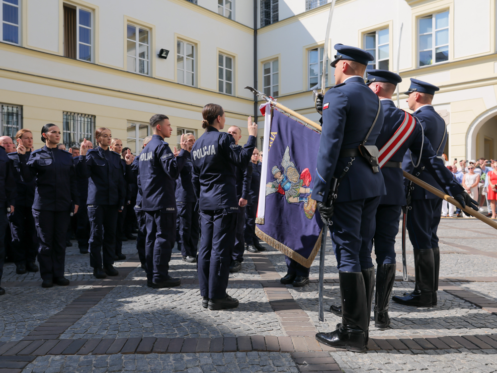 80 nowych policjantów wypowiedziało dziś słowa roty. Uroczysta zbiórka z okazji ślubowania odbyła się w na dziedzińcu Komendy Stołecznej Policji. 53 funkcjonariuszy i 27 funkcjonariuszek, rozpoczynających służbę w garnizonie stołecznym, po przeszkoleniu podstawowym zasili oddział prewencji oraz trafi do jednostek i komórek organizacyjnych Komendy Stołecznej Policji.
