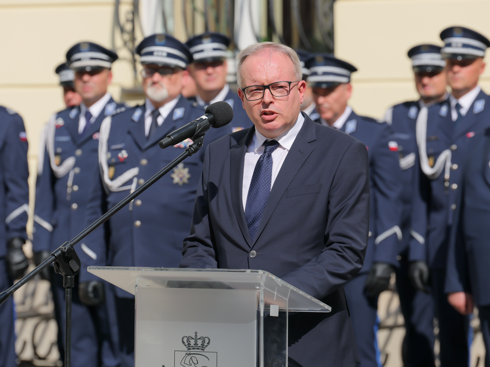 Komendant Stołeczny insp. Dariusz Walichnowski podziękował również bardzo licznie zebranym podczas dzisiejszej uroczystości członkom rodzin ślubujących policjantek i policjantów.