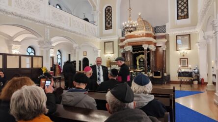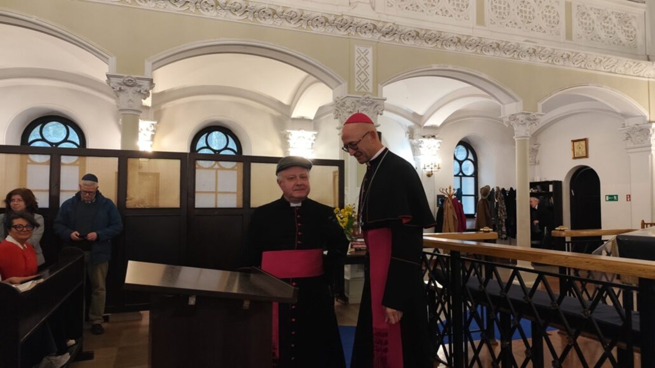 W warszawskiej Synagodze im. Zalmana i Rywki Małżonków Nożyków, w poniedziałek 13 kwietnia 2026 roku, odbyło się spotkanie upamiętniające 40. rocznicę wizyty św. Jana Pawła II w rzymskiej Synagodze Większej. Uczestniczyli w nim m.in. metropolita warszawski abp Adrian Galbas, naczelny rabin Polski Michael Schudrich oraz ks. Andrzej Tulej, przewodniczący komisji ds. dialogu ekumenicznego i międzyreligijnego.