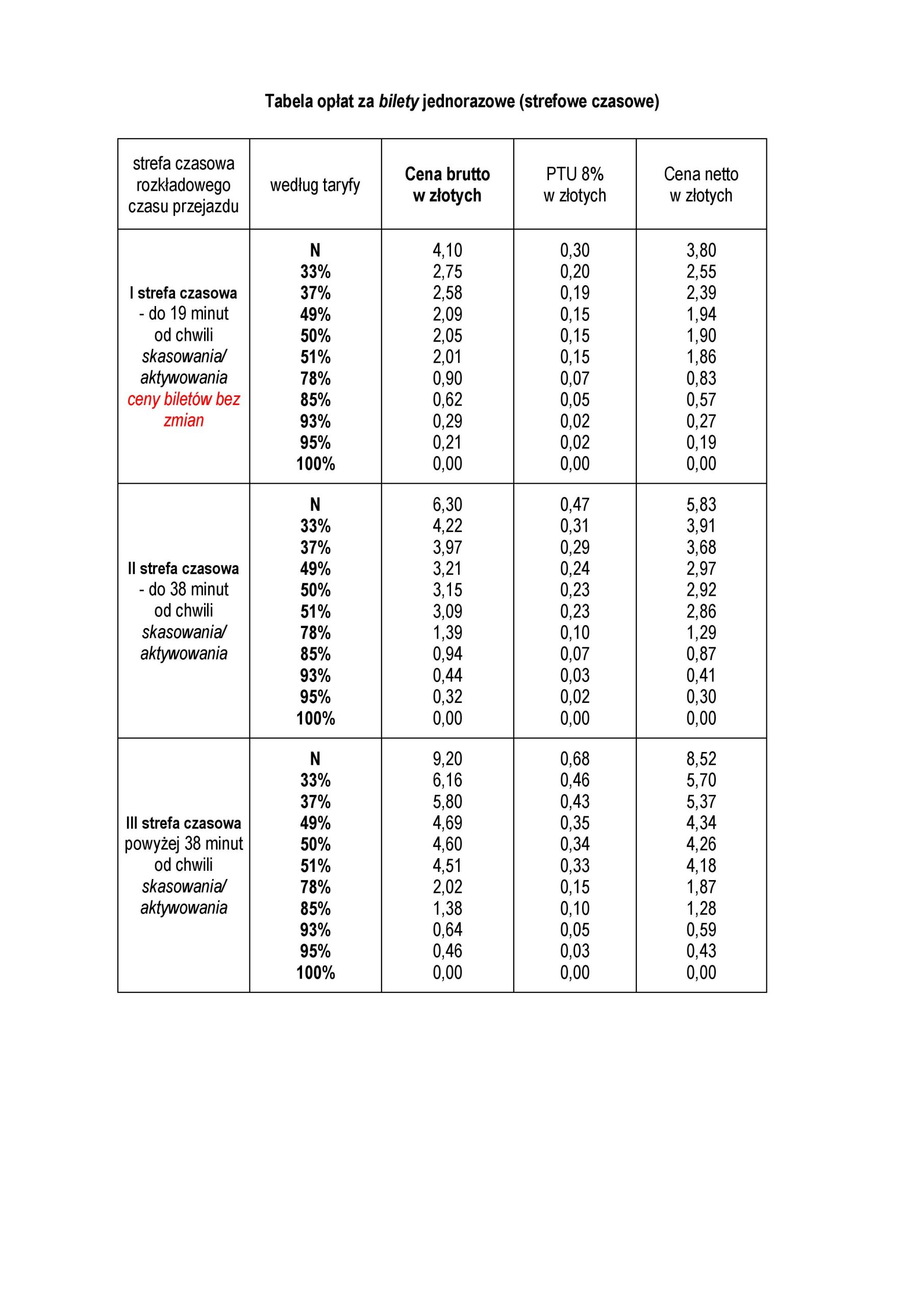 2. Zmiana taryfowa w zakresie biletów kwartalnych bezimiennych